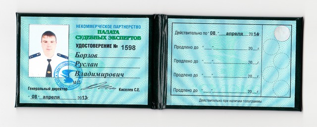 Получил свидетельство № 1598 некоммерческого партнерства «ПАЛАТА СУДЕБНЫХ ЭКСПЕРТОВ». Протокол заседания Президиума Партнерства № 64 от 08 апреля 2013 года.